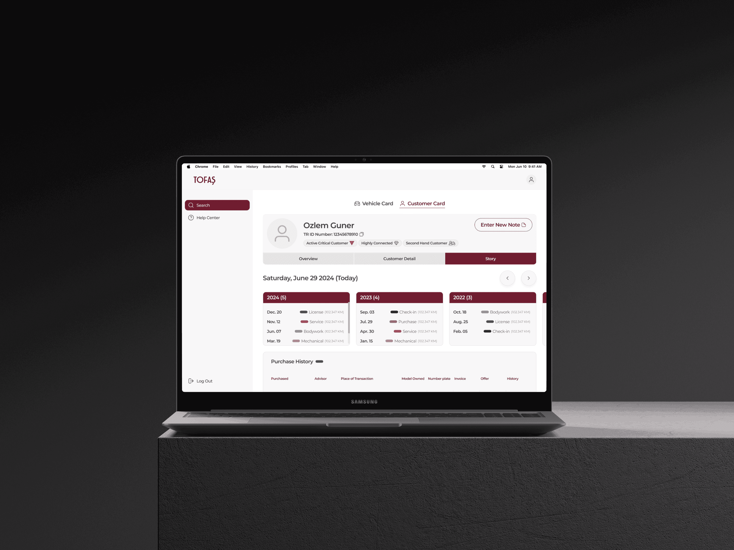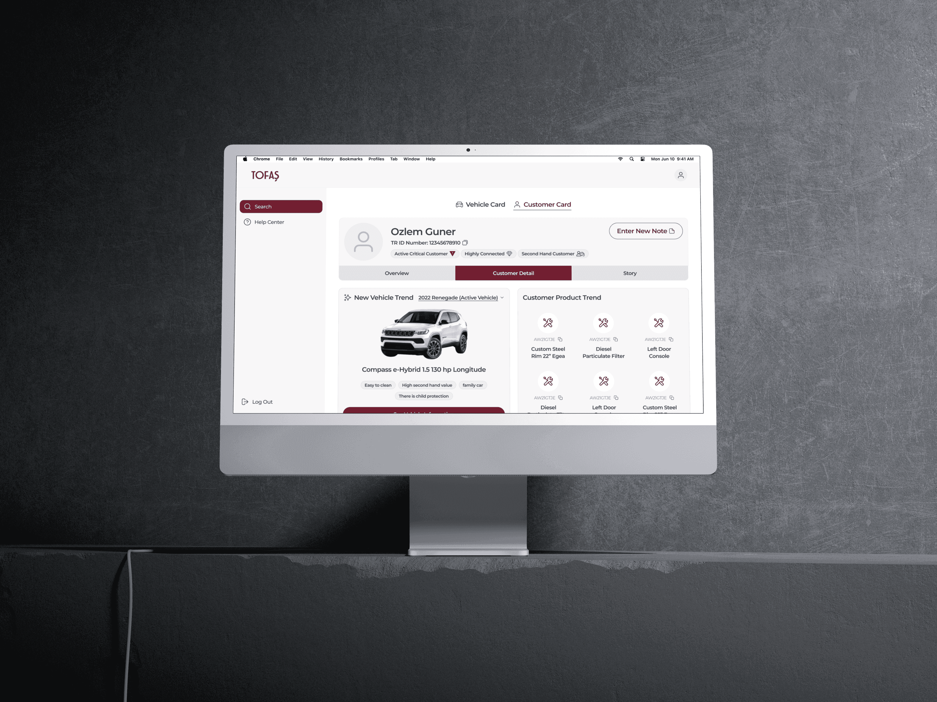 This project modernized an outdated and visually obsolete system with a complex information architecture that no longer met employee needs. By consolidating scattered workflows, Tofaş 360 reduced the time employees spent searching across multiple sources, organized service records, and lowered cognitive load. For customers, it ensured their notes, special requests, and even personal details like birthdays were seamlessly available across all service centers, eliminating repeated explanations and reducing errors.